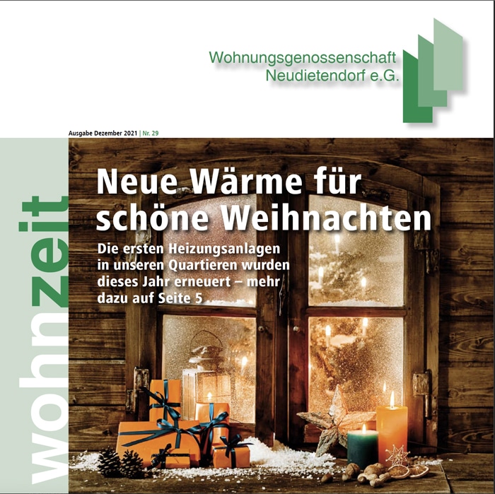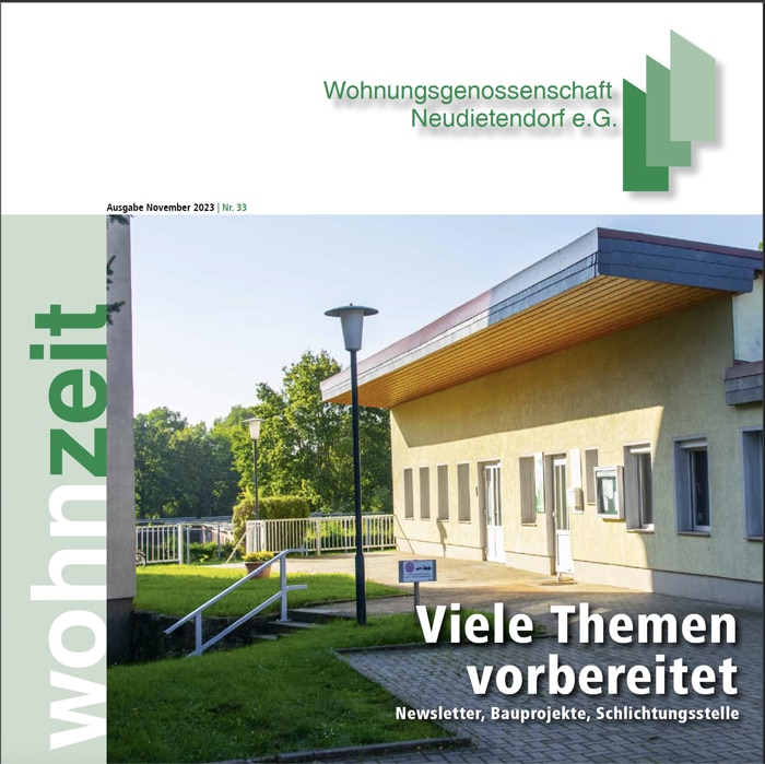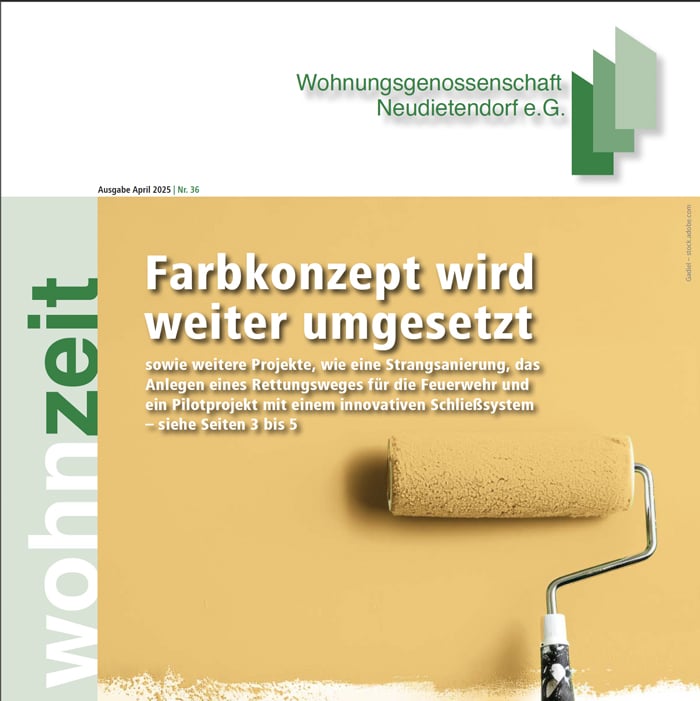 Entdecken Sie unsere Mitgliederzeitung Wohnzeit jetzt auch online. Hier stehen Ihnen alle Ausgaben ab 2021 im PDF-Format zum Download zur Verfügung – kompakt, informativ und jederzeit abrufbar. Bleiben Sie auf dem Laufenden über Neuigkeiten, Projekte und Entwicklungen rund um unsere Genossenschaft.